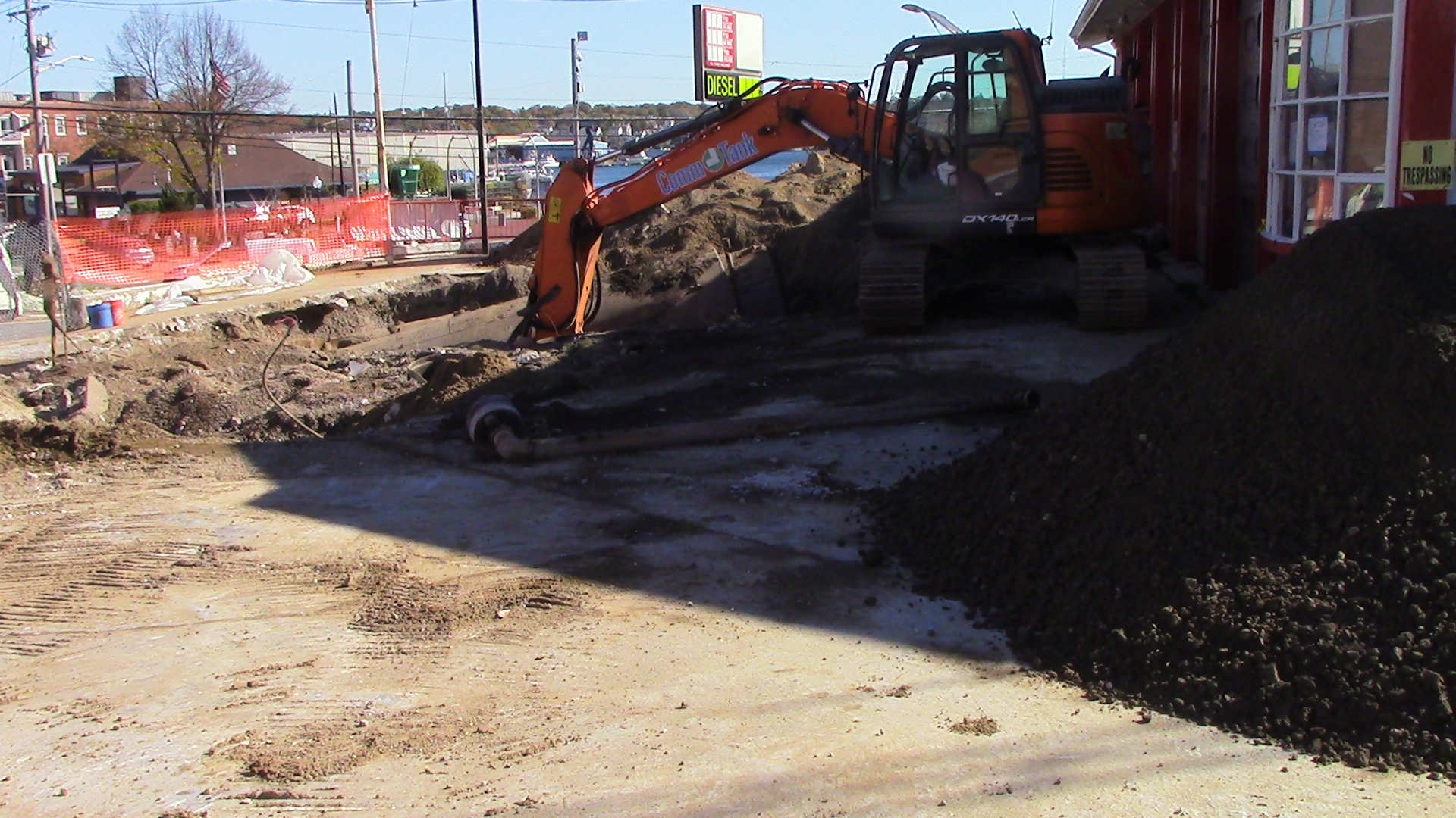 Gasoline storage tanks being removed from former Tony’s Mobil Mart/Dunkin, Essex Avenue, Gloucester