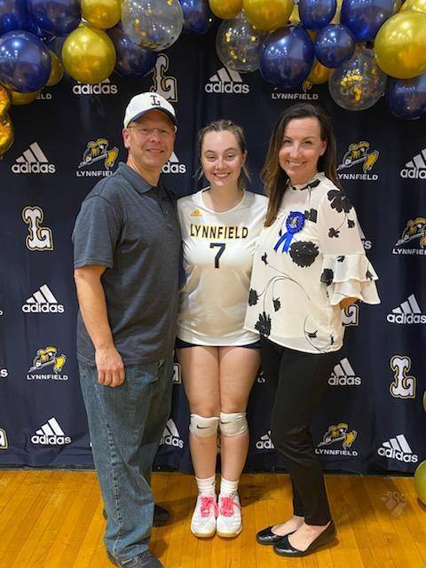 Lynnfield Volley – Senior night, Heidi and Andy Carbone with senior Celia