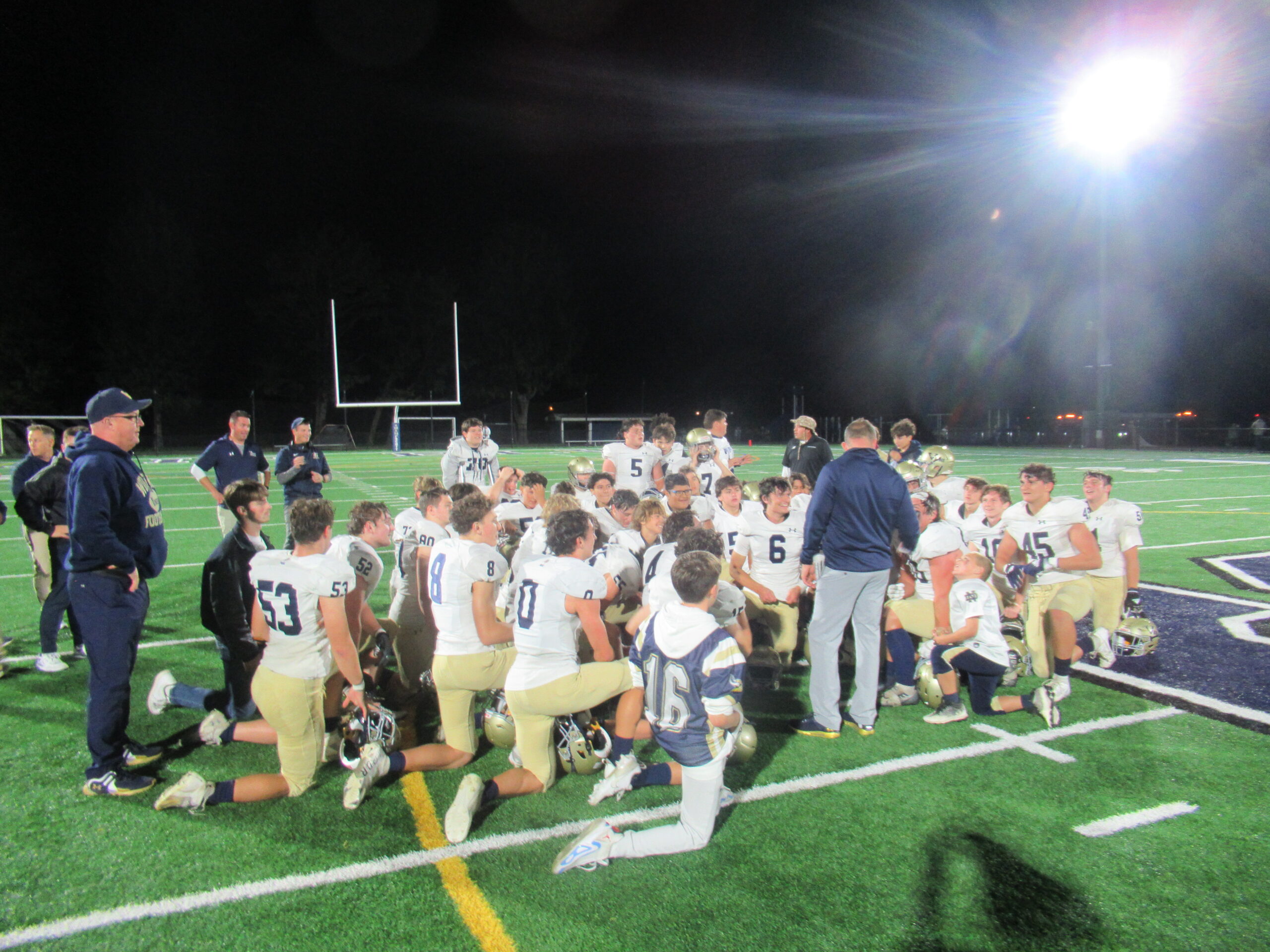 SWAMPSCOTT – (Photos – Videos) Winthrop trailed 14-0 at the halftime but scored early in the second half and had tied the game by the end of the third quarter (14-14). The fourth quarter began with the Vikings grabbing the game winning touchdown, a 64 yard run by Nick Cappuccio. The victory was sealed with less than a minute to play in the game when Robert Rich intercepted a Swampscott pass on the Winthrop 25 yard line. One week ago, Winthrop led St. Mary’s 14-0 at the half, only to lose 15-14 at Manning Field.