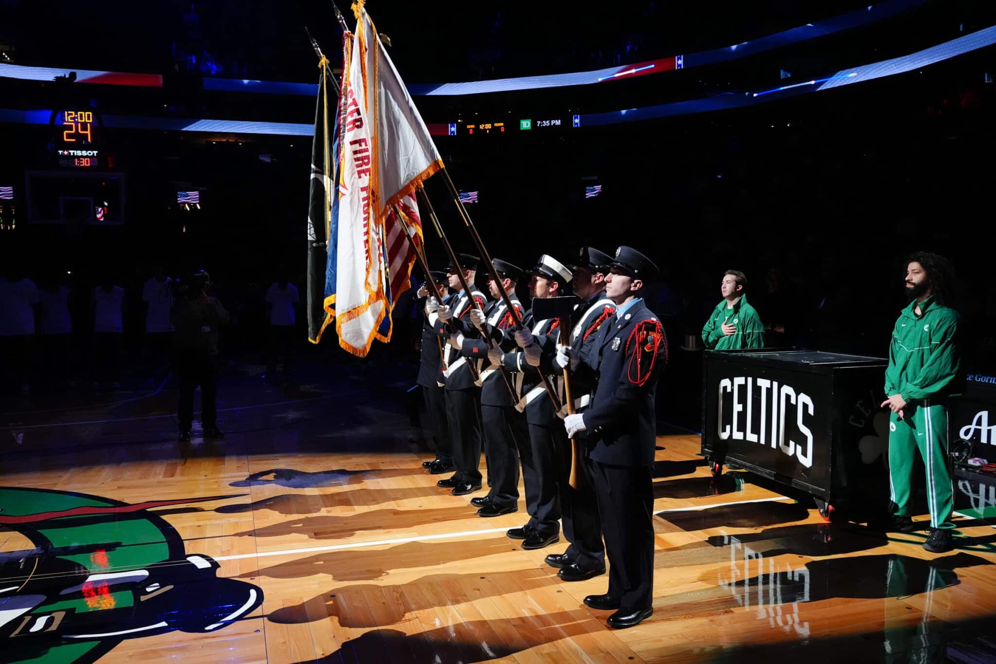 On Friday, April 10, the Gloucester Fire Department Honor Guard presented the colors before the Celtic’s 144-118 win over the New Orleans Pelicans.