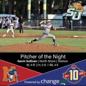 Four North Shore relievers posted scoreless innings following Sullivan including Parker Browne (Suffolk) and Jack Wallace (Franklin Pierce) who struck out two apiece.
