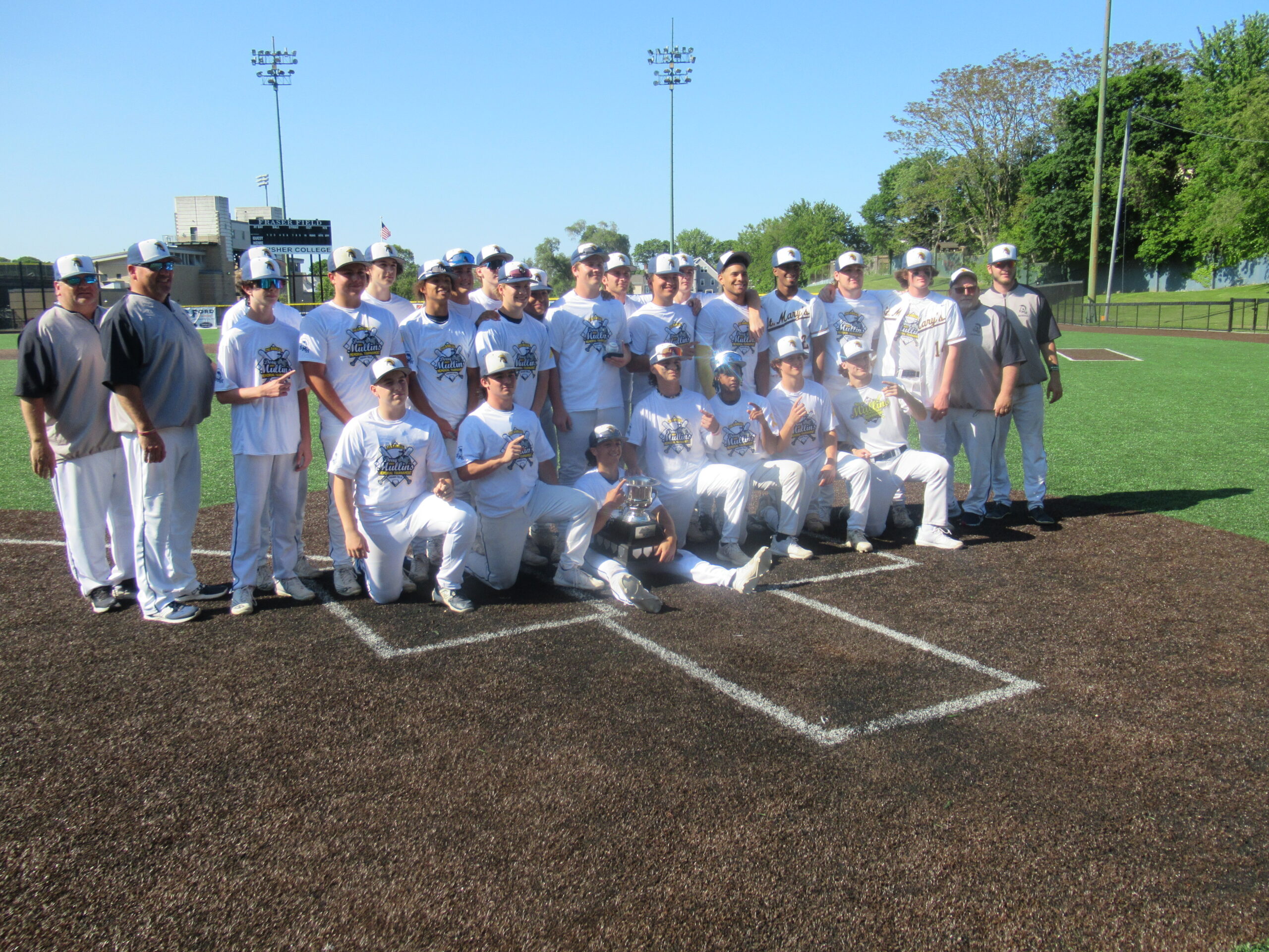 LYNN (Video – Photos) The St. Mary’s baseball team won this weekend’s Doug Mullin’s Memorial tournament by defeating Lynn Classical Saturday afternoon (4-1) in the championship game. St. Mary’s beat Lynn English Friday night while Classical topped Swampscott to get to the championship game. Earlier today, Lynn English beat Swampscott 10-6 in the consolation game. St. Mary’s pitcher Josh Doney was outstanding on the mound allowing only 6 hits in today’s game. Offensively Michael DeMarino scored two runs and knocked in two runs. Josh Doney scored what turned out to be the game winning run in the 5th inning. St. Mary’s will wrap up their regular season Monday afternoon against St. John’s Prep at Fraser Field in Lynn. The Rams end the regular season 17-3, 14-0 in the Greater Boston League. Hear from both coaches with their post game comments. Derek Dana (St. Mary’s) and Mike Zukowski (Lynn Classical) Also below, hear from tournament MVP Tommy Falasco (St. Mary’s). (Photos Below)