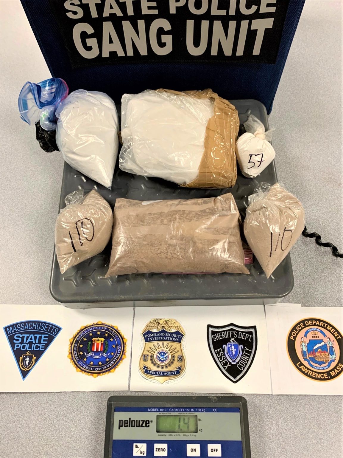 The total weight of suspected fentanyl seized during the search warrant execution was 1,224 grams with packaging. Along with the undercover purchase of 224 grams with packaging, the total amount seized by Troopers, Task Force Officers, and Lawrence Police in Tuesday’s operation was approximately 1,448 grams.