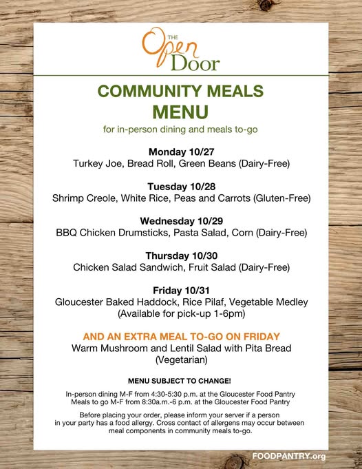 ➡️Need food ASAP? Come to The Open Door at 28 Emerson Avenue Gloucester MA Monday-Friday, from 8:30am to 6:00pm for a Quick Trip, a supply of free grocery staples.