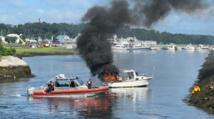explosion early Monday morning. At approximately 8:58 a.m., Gloucester Fire received reports that a boat was on fire near the Blynman Bridge, with people in the water. Upon arrival, crews observed a boat that was engulfed. The boat’s two occupants were safely pulled from the water and transported to area hospitals for what are believed to be non-life threatening injuries. Gloucester Police Boat began a direct attack on the flames. The Gloucester Harbormaster towed the vessel back to shore, where Gloucester Fire extinguished the fire. The U.S. Coast Guard provided assistance in managing the waterway while these efforts were on going.